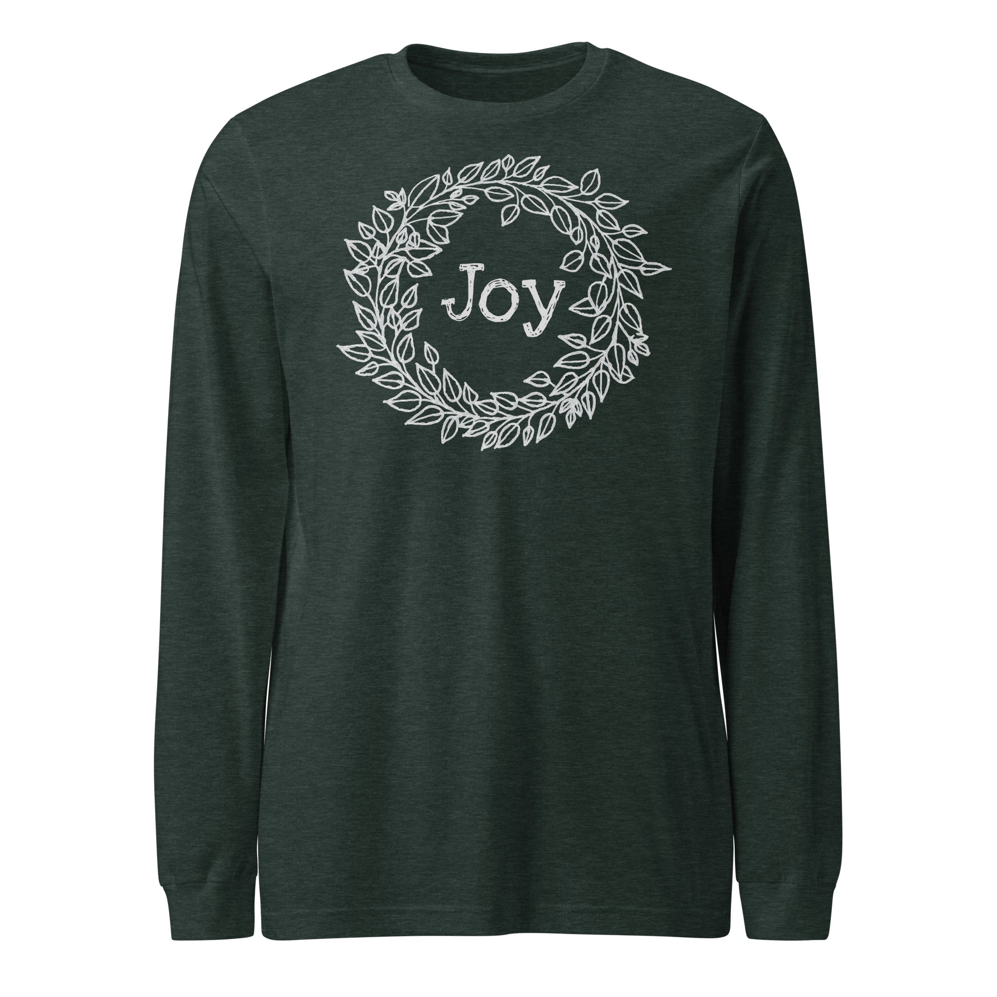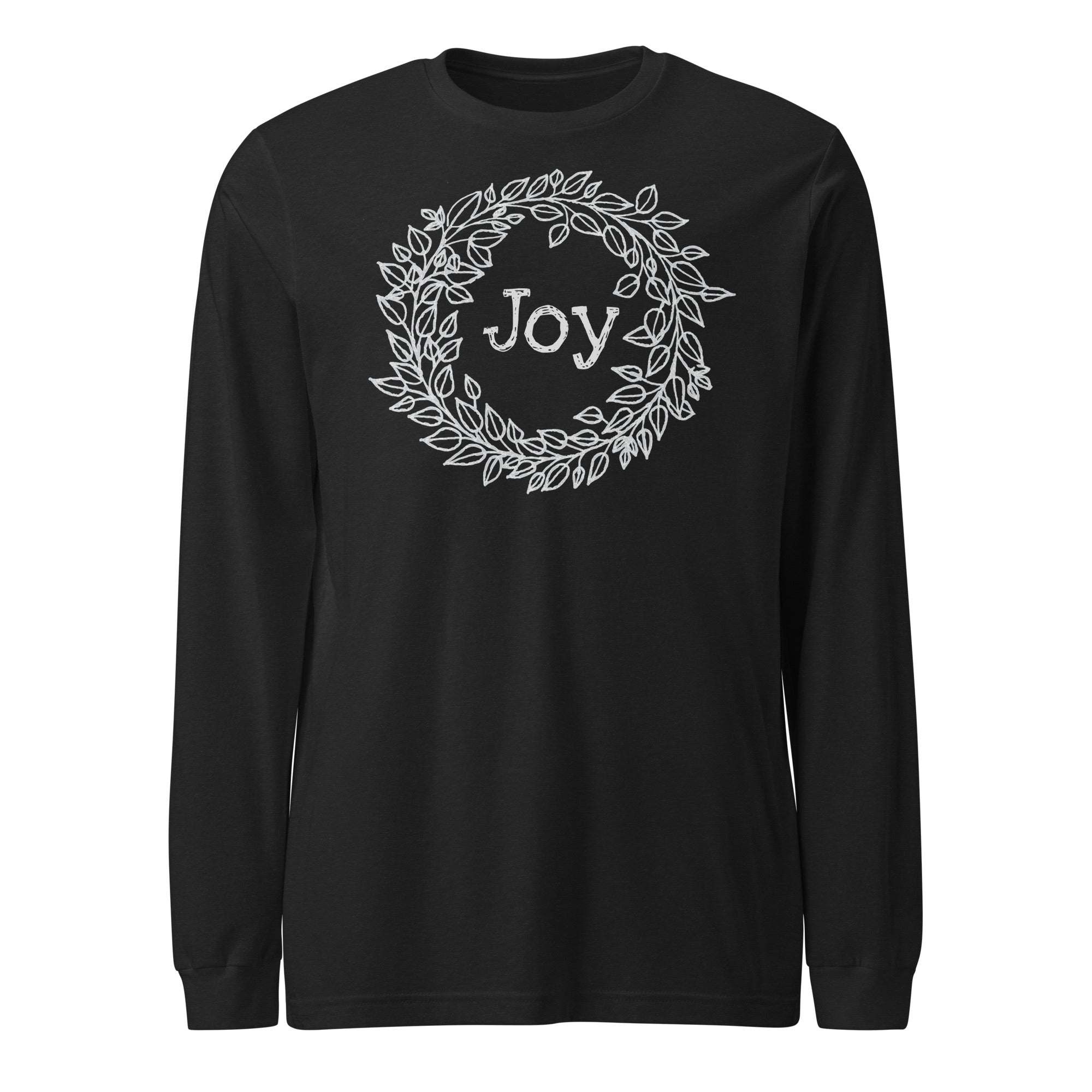 A hand-drawn wreath encircles the word "Joy," making this design a versatile option you'll wear on repeat.