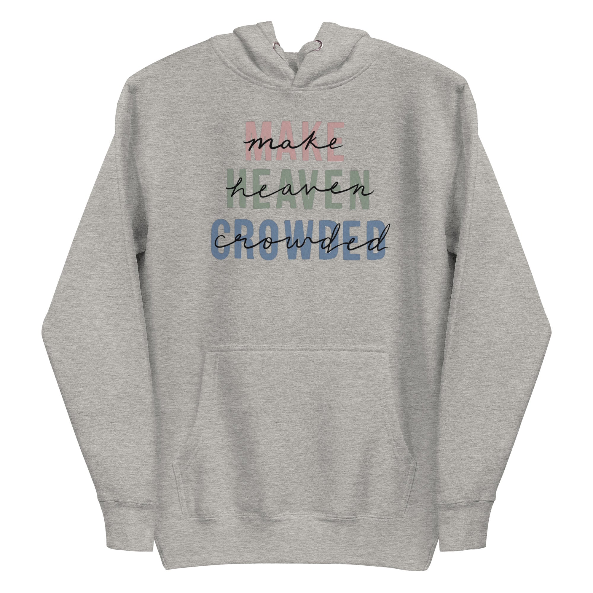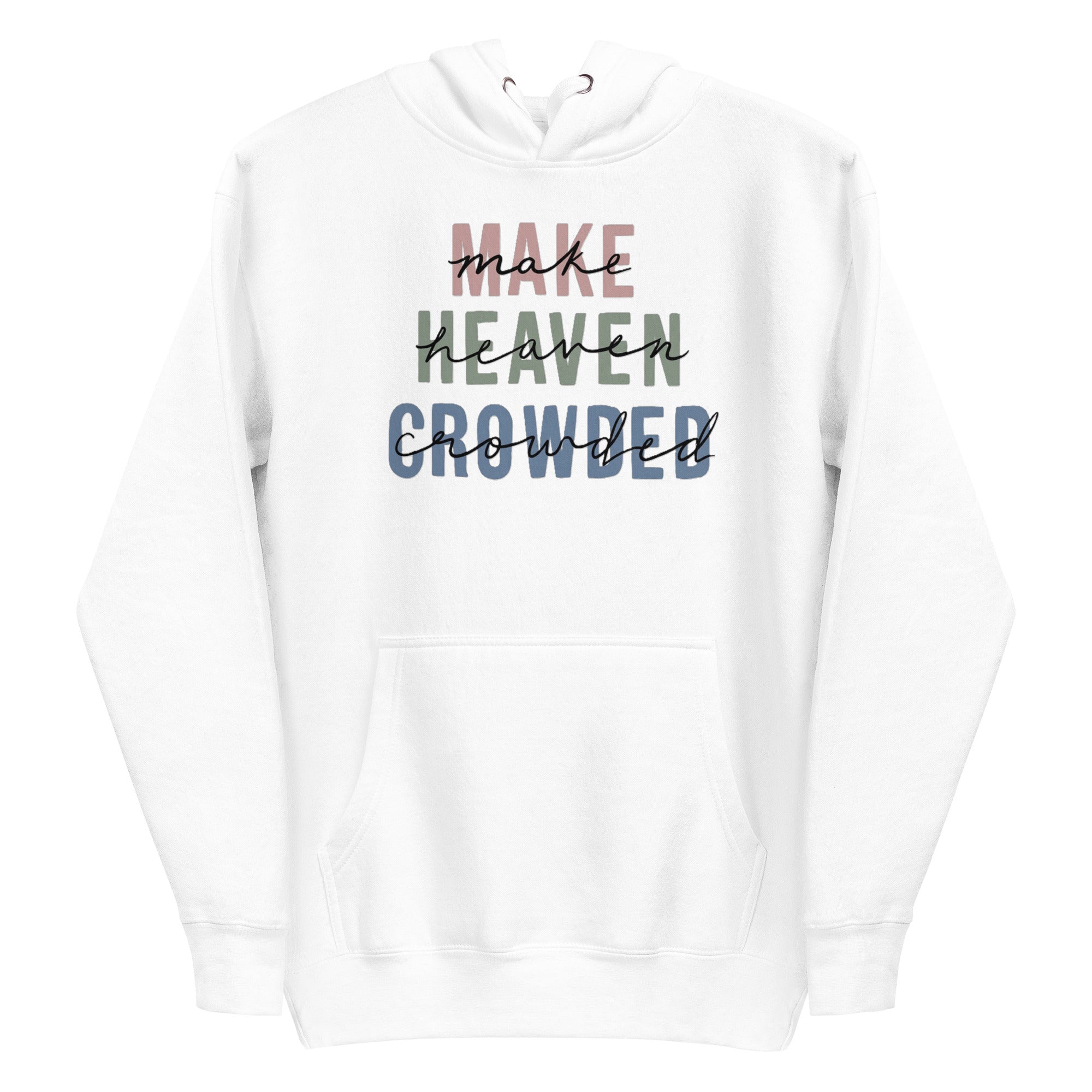 Wrap yourself in purpose with our Make Heaven Crowded hoodie—a cozy reminder to live with faith and intention every day.