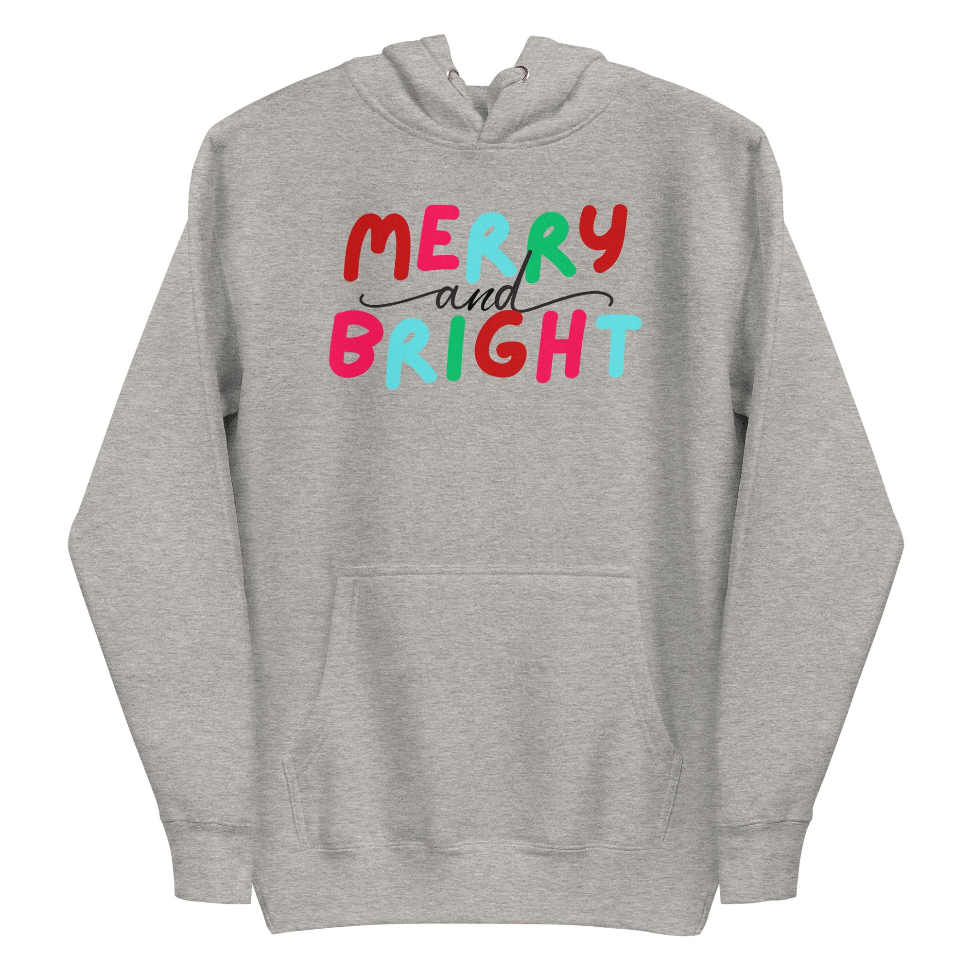 Add a pop of festive cheer to your wardrobe with our Merry & Bright Hoodie! Featuring bold, playful lettering in red, green, pink, and teal, this design brings modern holiday fun with a retro twist.